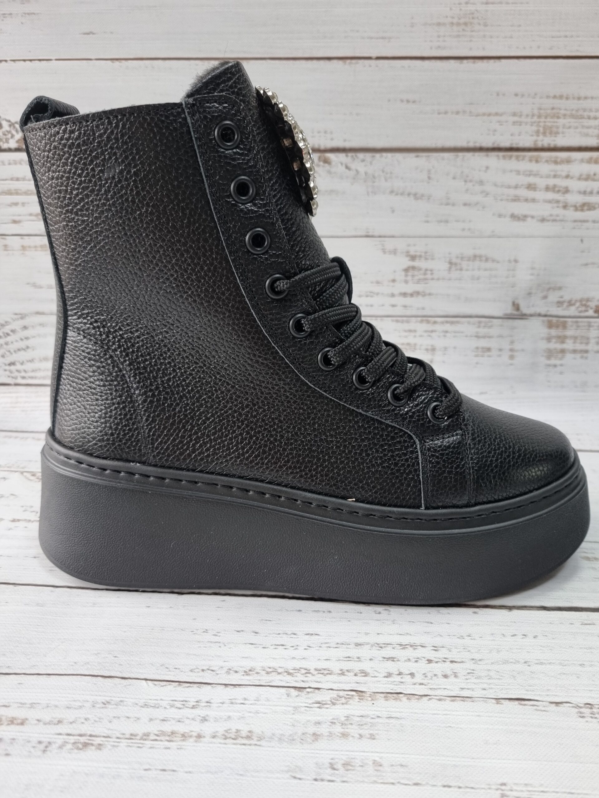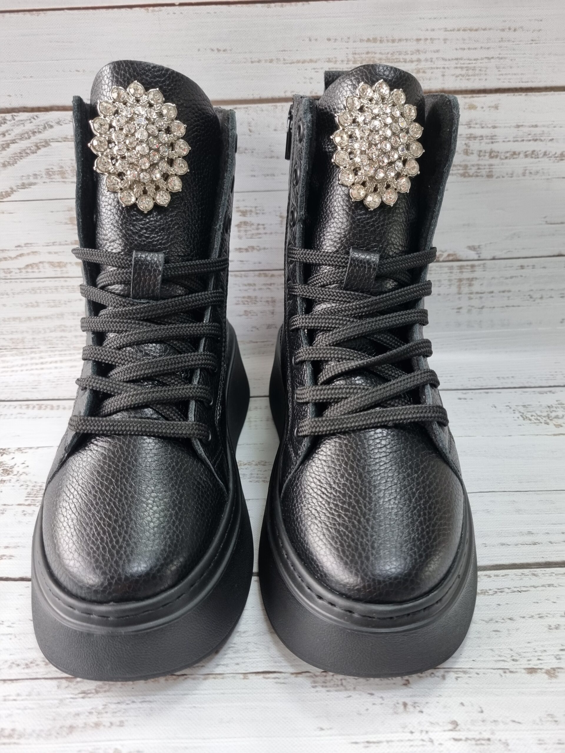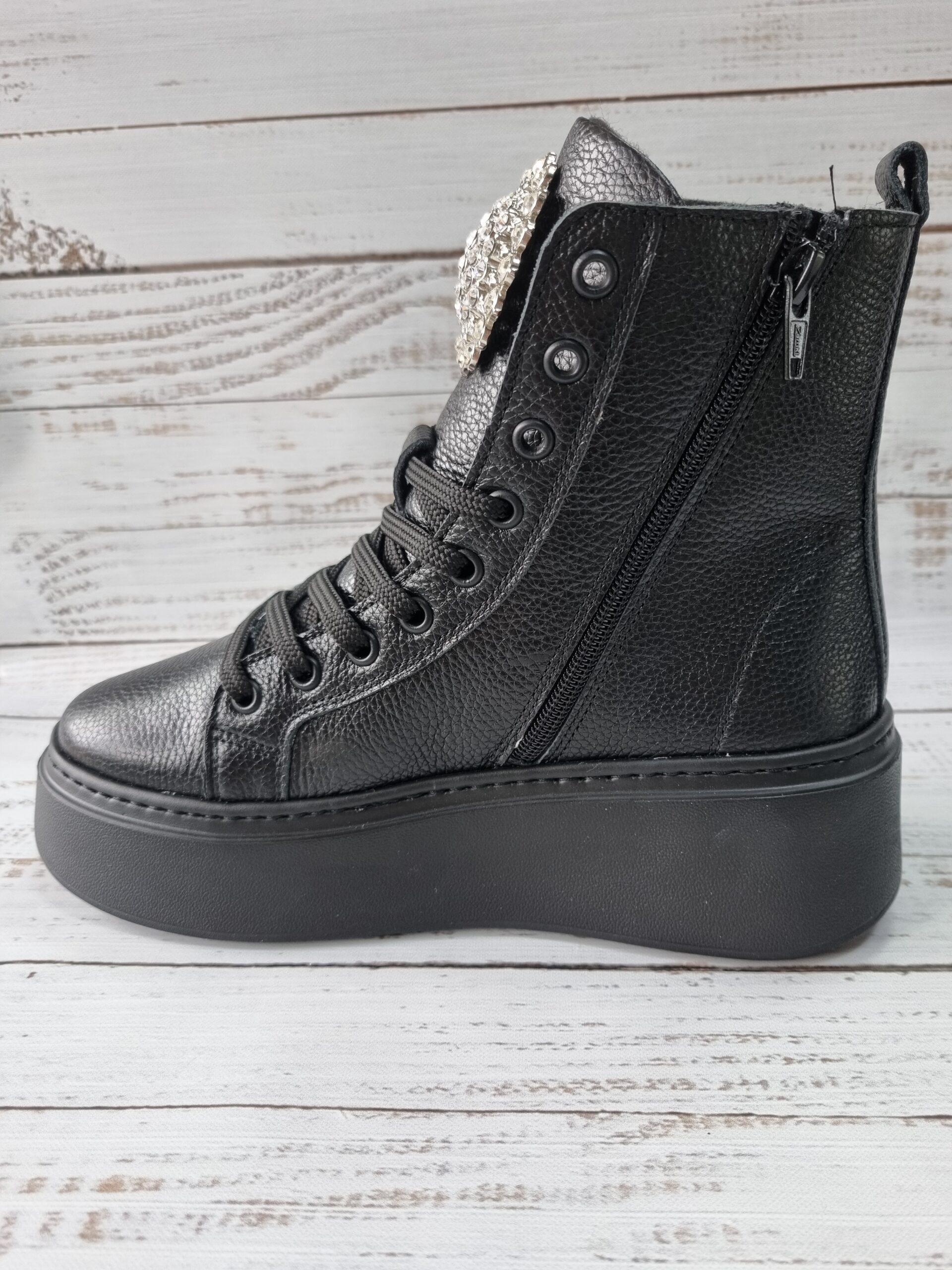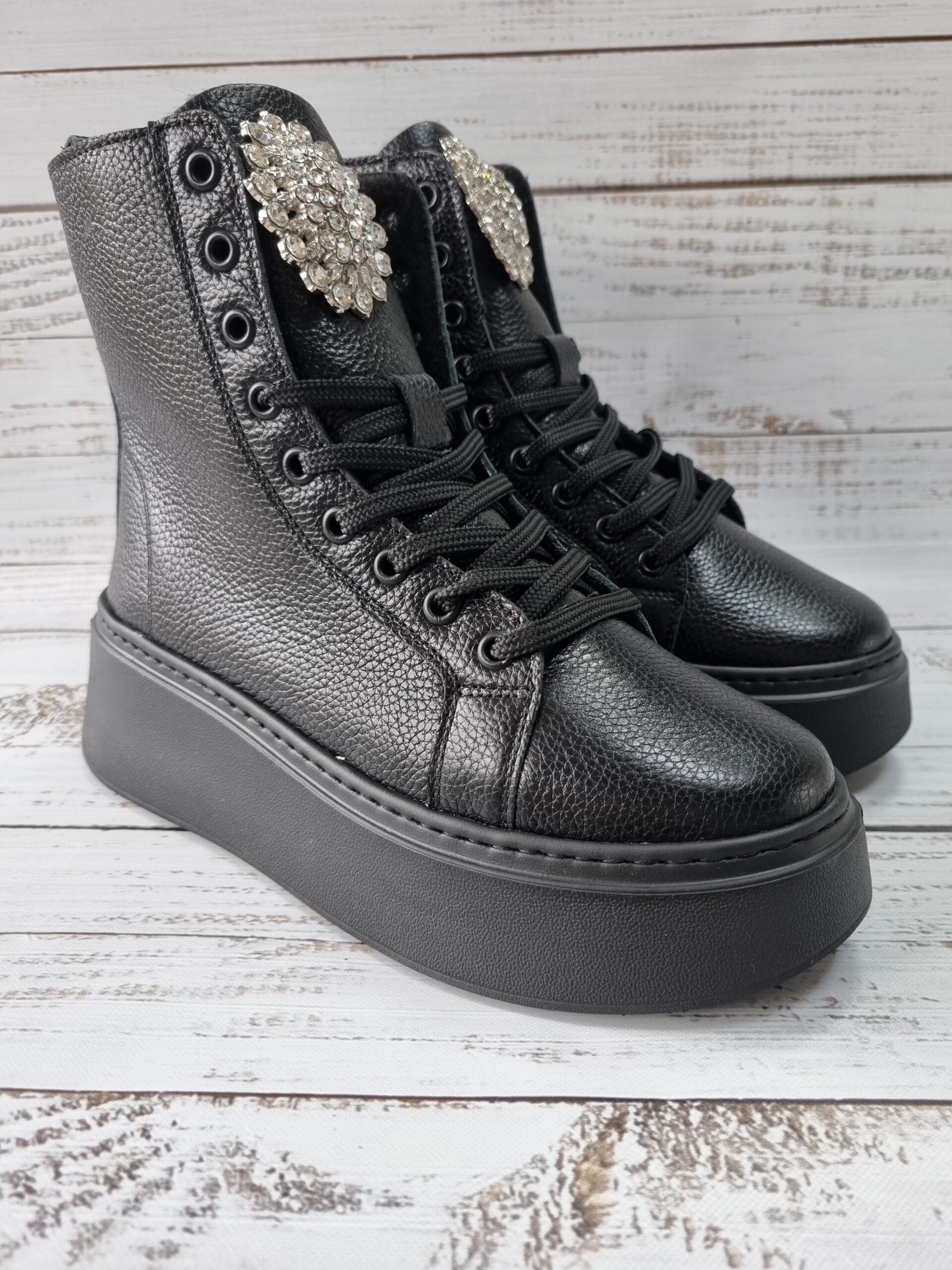 Carla Ricci feket magasszárú cipő köves díszítéssel (M-1375-569-K)