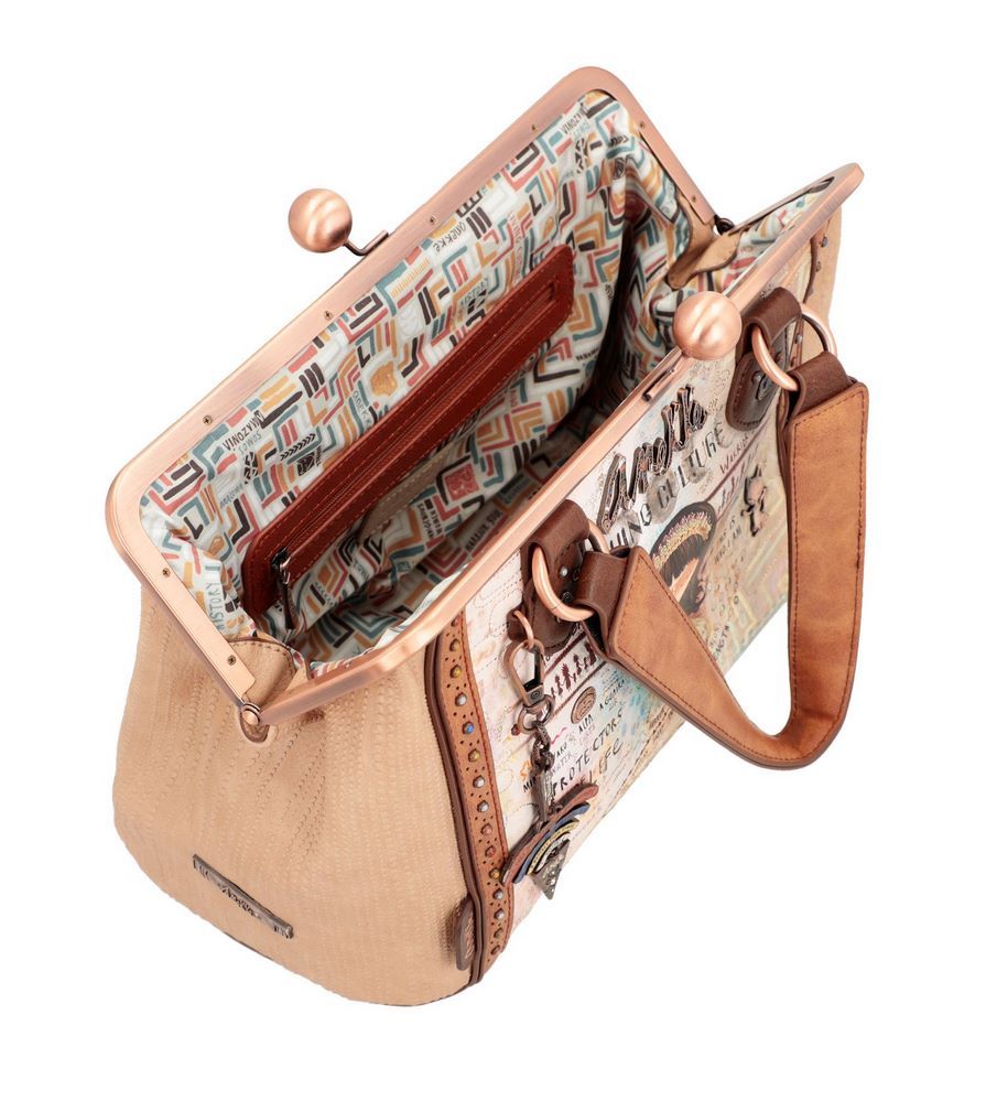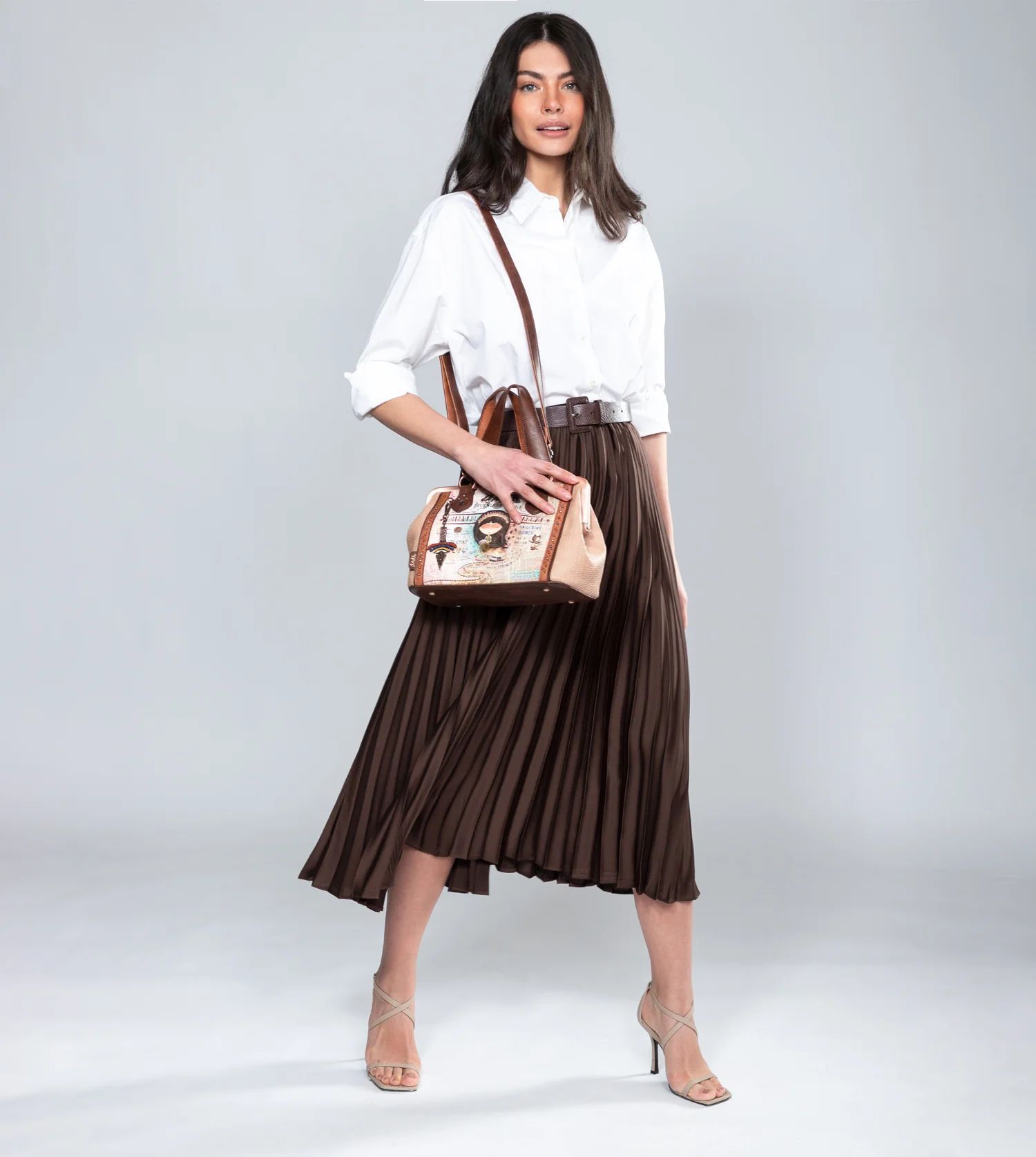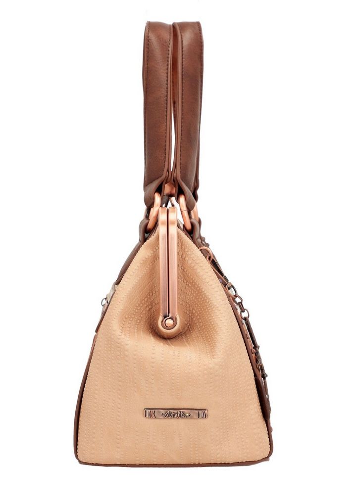 - a táska mindkét oldal egyenértékű táskaként funkcionál: eleje díszesebb, hátoldala visszafogottabb megjelenésű
